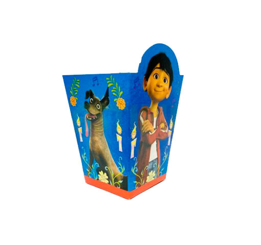 Caja fantasía de cartón con la temática de Coco, el diseño de las 4 caras está tal como se muestra en las imágenes. El paquete contiene 6 piezas.
