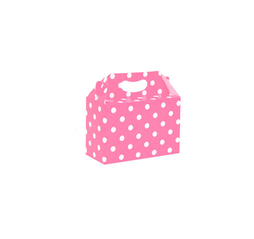 Caja fantasía de cartón con la temática rosado puntos blancos, el diseño de las 4 caras está tal como se muestra en las imágenes. El paquete contiene 6 piezas. Son ideales para decorar la mesa de dulces, para dar aguinaldo, para alguna botana, entre mucho mas.