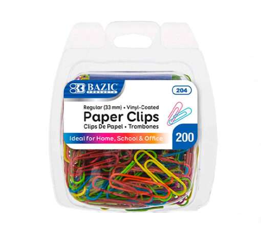 Mantén tus papeles organizados y seguros con estos clips metálicos revestidos de vinilo de varios colores. La superficie lisa evita enganches y marcas en el papel. Ideal para la escuela, el hogar y la oficina. Es un paquete de 200 clips de papel de diferentes colores.