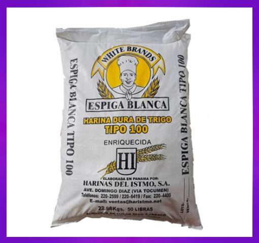 CONTENEDOR DE HARINA DE TRIGO TODO USO ESPIGA BLANCA – SACO 50LB (22,68KG) 25TM X 20FT