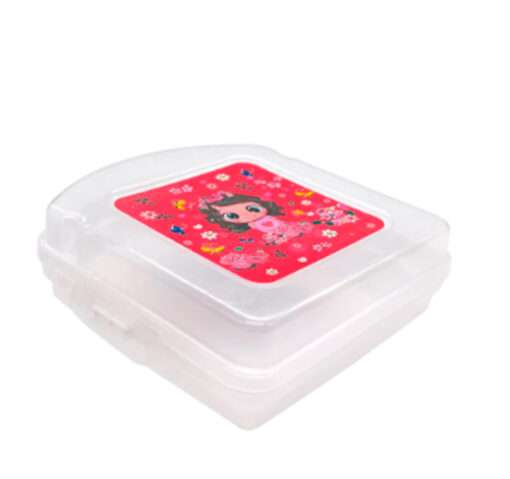 Con un diseño divertido y colorido, este envase es ideal para sandwiches y snacks para niños. Su tamaño y practicidad lo hacen perfecto para las meriendas escolares.
