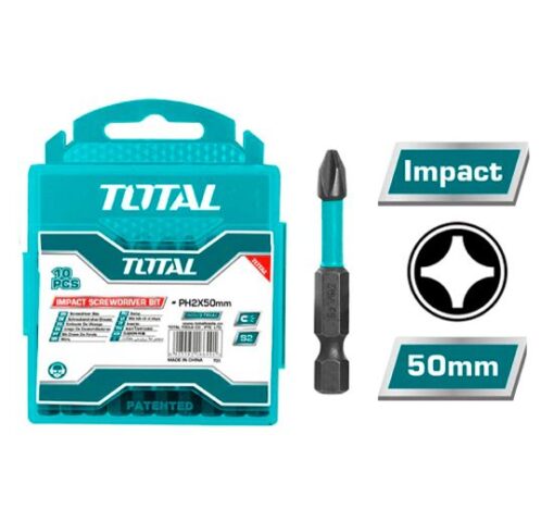 Juego de puntas para Destornillador PH2 (10 Piezas, 50mm).Acero Industrial S2, Punta magnética