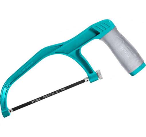 Mini Segueta Industrial para Metal de 150mm/6» para trabajo pesado. Incluye 1 Hoja de Sierra. Marco con Mango cómodo de aluminio 800Y. Tensión ajustable. Mecanismo de cambio de cuchilla de liberación rápida.