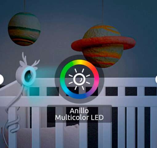 El anillo de luz RGB regulable rinda una iluminación tenue e ideal para que tu bebé duerma como un angelito.