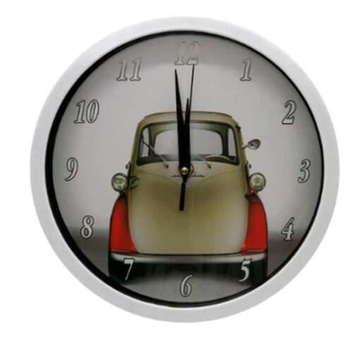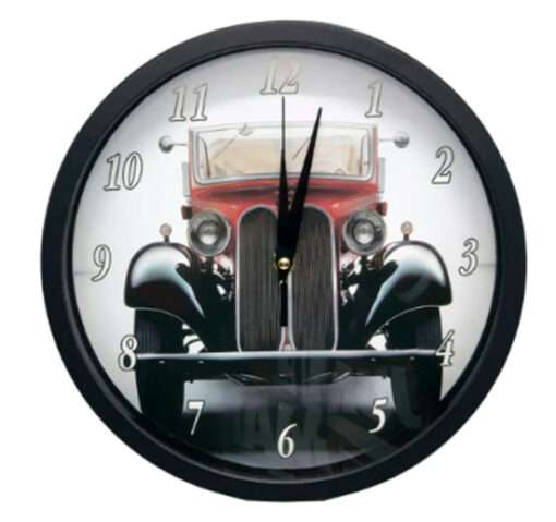 Hermoso reloj de pared con diseño en fondo de carro, ideal para esas decoraciones coloridas.