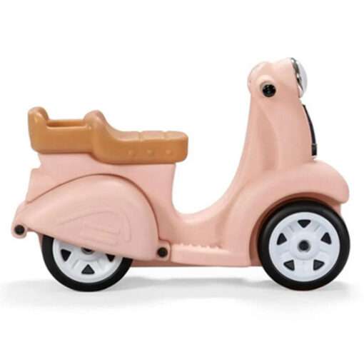 Este scooter tiene cuatro ruedas para mayor estabilidad mientras está parado y durante el juego. El diseño de estilo antiguo incluye detalles de cromo falso y detalles moldeados en los huecos de las ruedas. ¡El espacio de almacenamiento del asiento trasero es perfecto para llevar un juguete favorito o un animal de peluche! Este scooter de pie es lo suficientemente alto para que los niños pequeños se suban a bordo y naveguen hasta su destino por su cuenta.