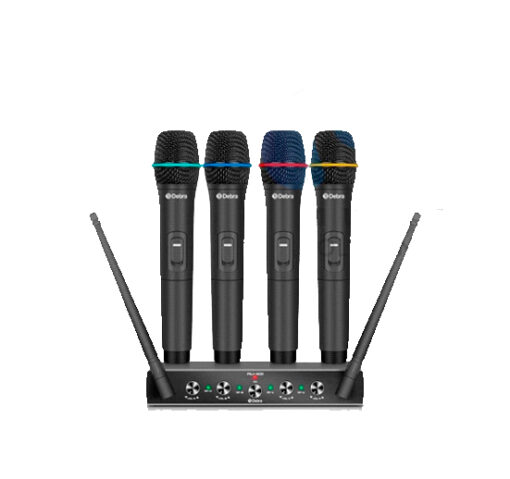 Sistema de micrófono inalámbrico Debra Audio AU400 de 4 canales. (Dos puntos de freuqncy de juego: A- 501/511.5/524/538.5 B-506/517.5/531/546.5)