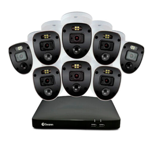 SWANN KIT DE 8 CAMARAS | CON LUZ DE POLICIA | SISTEMA TRUE DETECT | DETECTA CALOR Y MOVIMIENTO | NIGTH VISION A COLOR | 1080P | DISCO DURO DE 1 TB | BLANCO