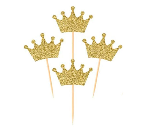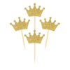 Decoración para cupcakes con corona de purpurina dorada, 4 unidades, corona para tartas de cumpleaños, corona de cumpleaños y niña, corona dorada con purpurina, corona de cumpleaños, boda, cupcakes